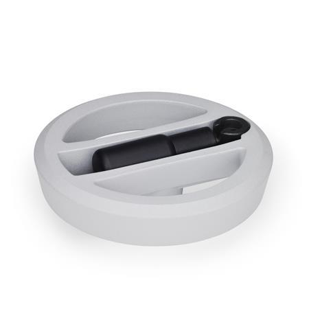 壓力彈簧將把手固定在兩個位置。當擺出時,它會自動再次接合。
